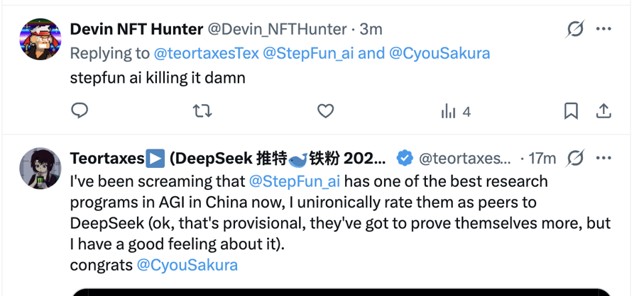 在与阶跃星辰研发团队的不异中,有开导者但愿阶跃星辰不错将基础模子与教唆/想考模子沿途发布,这么社区就不错对它进行微调了。